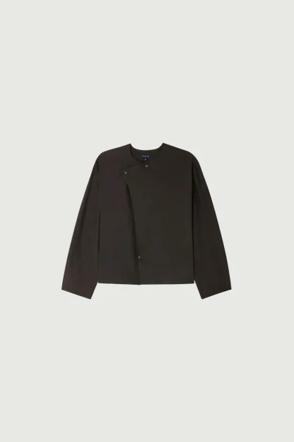 ANTOINE est une blouse sophistiquée en soie lavée. Un grand panneau de tissu crée un effet drapé asymétrique. Sa coupe et son décolleté sont modulables grâce à plusieurs options de boutonnage.