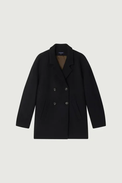 SALFORD est un manteau caban court à la forme ample et ronde. Confectionné en tweed double noir en laine. Il peut se porter avec le col ouvert ou fermé. Doté d’un double boutonnage et de deux poches passepoilées à l’avant, il combine élégance et intemporalité avec des manches rondes pour un confort optimal.