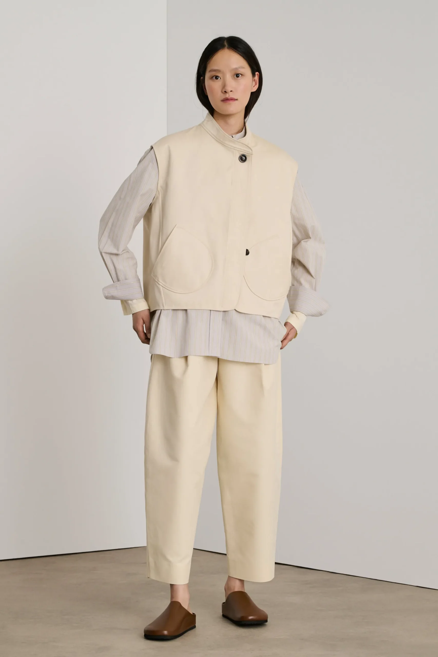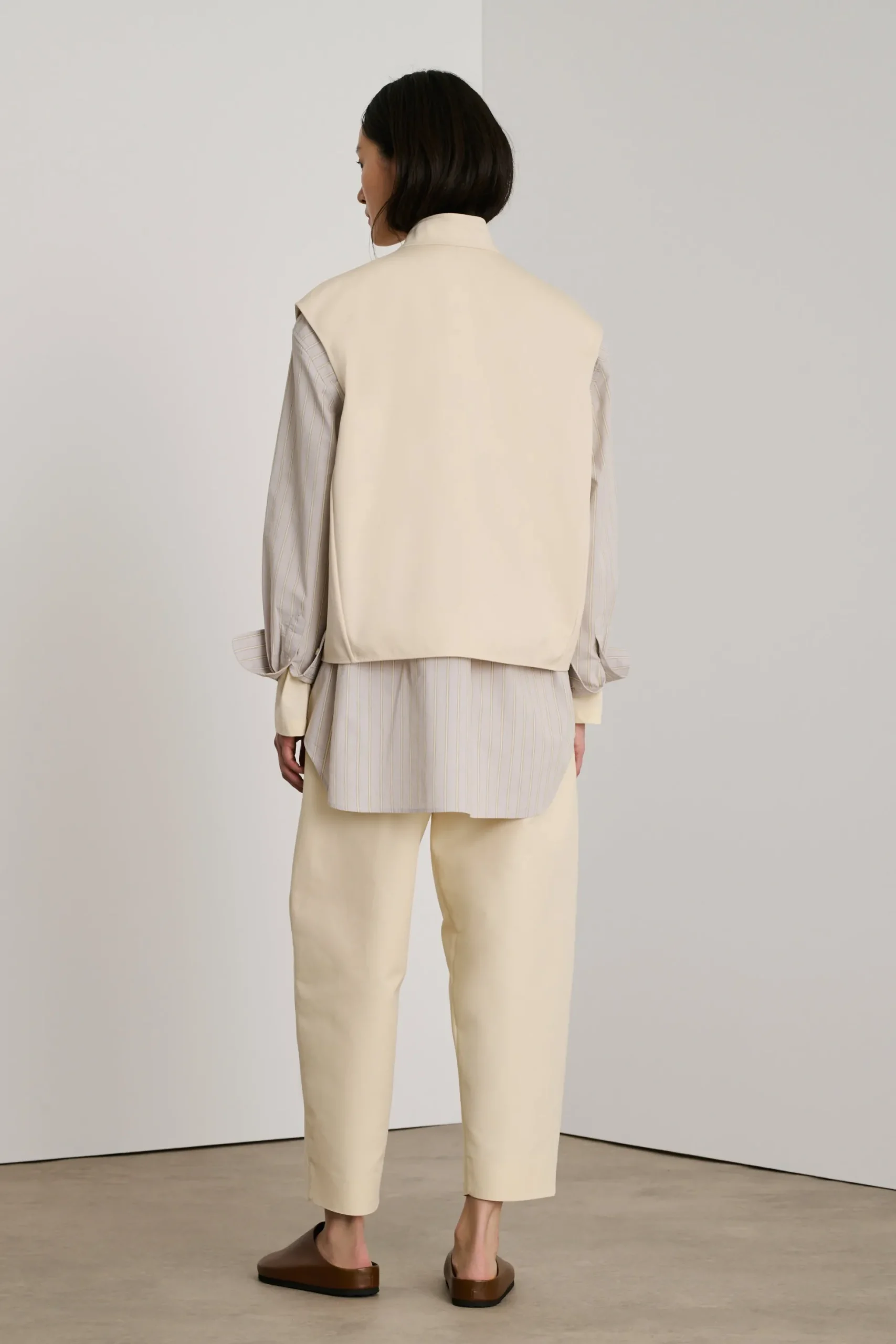 Blouson sans manches en coton double satiné blanc cassé