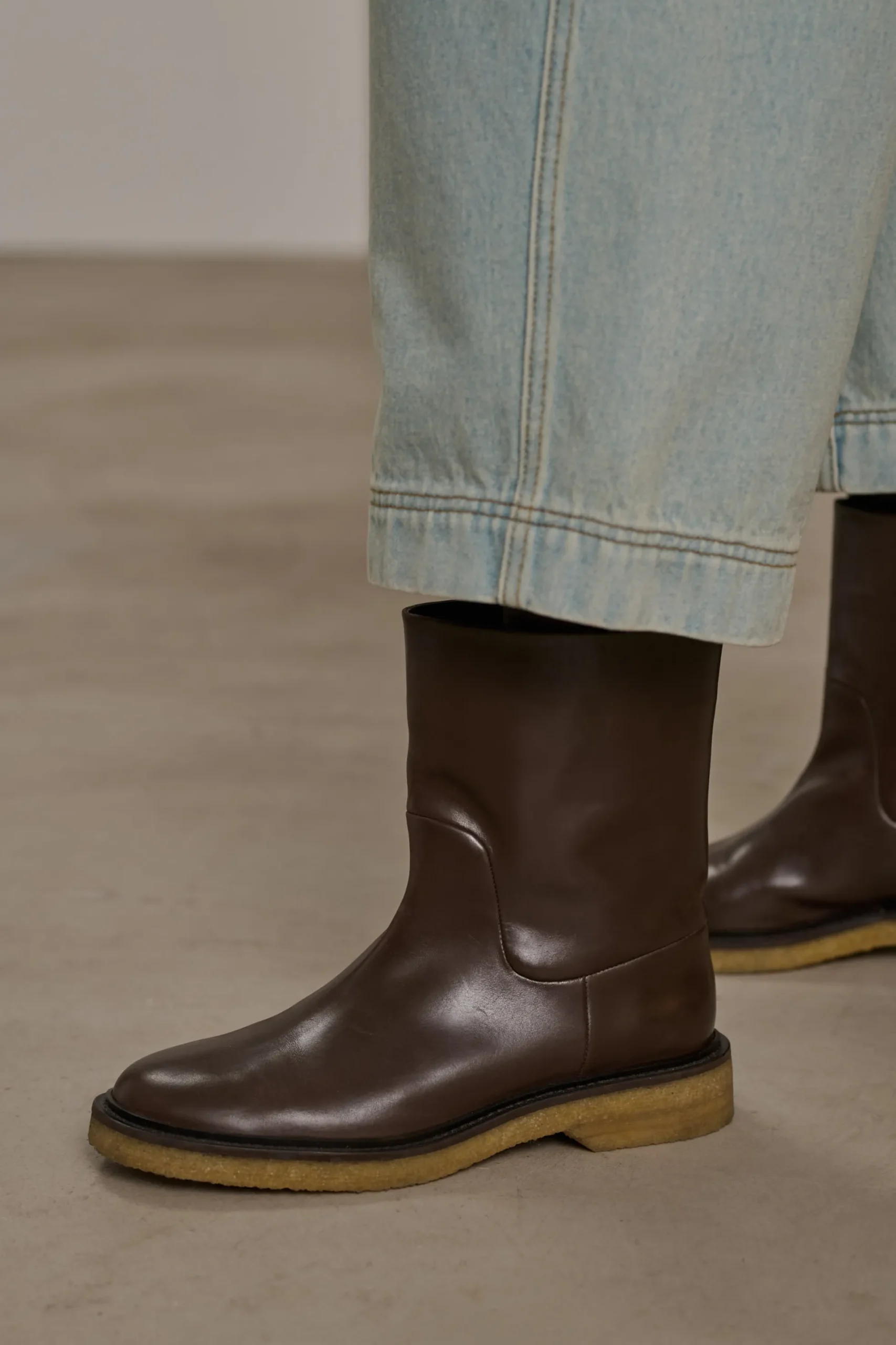 Bottes mi-hautes en cuir lisse ébène
