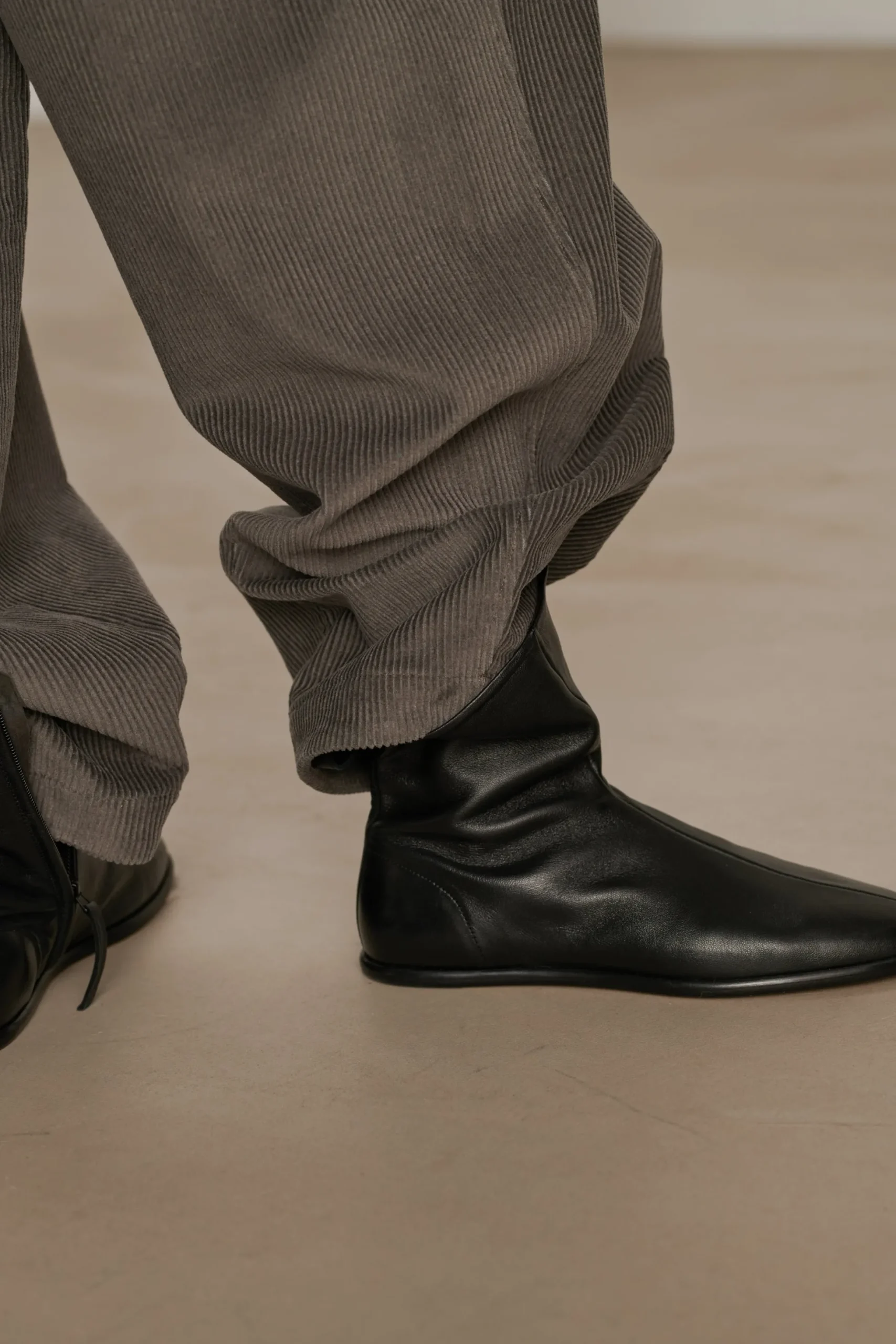 – Bottine chaussette plate en cuir souple