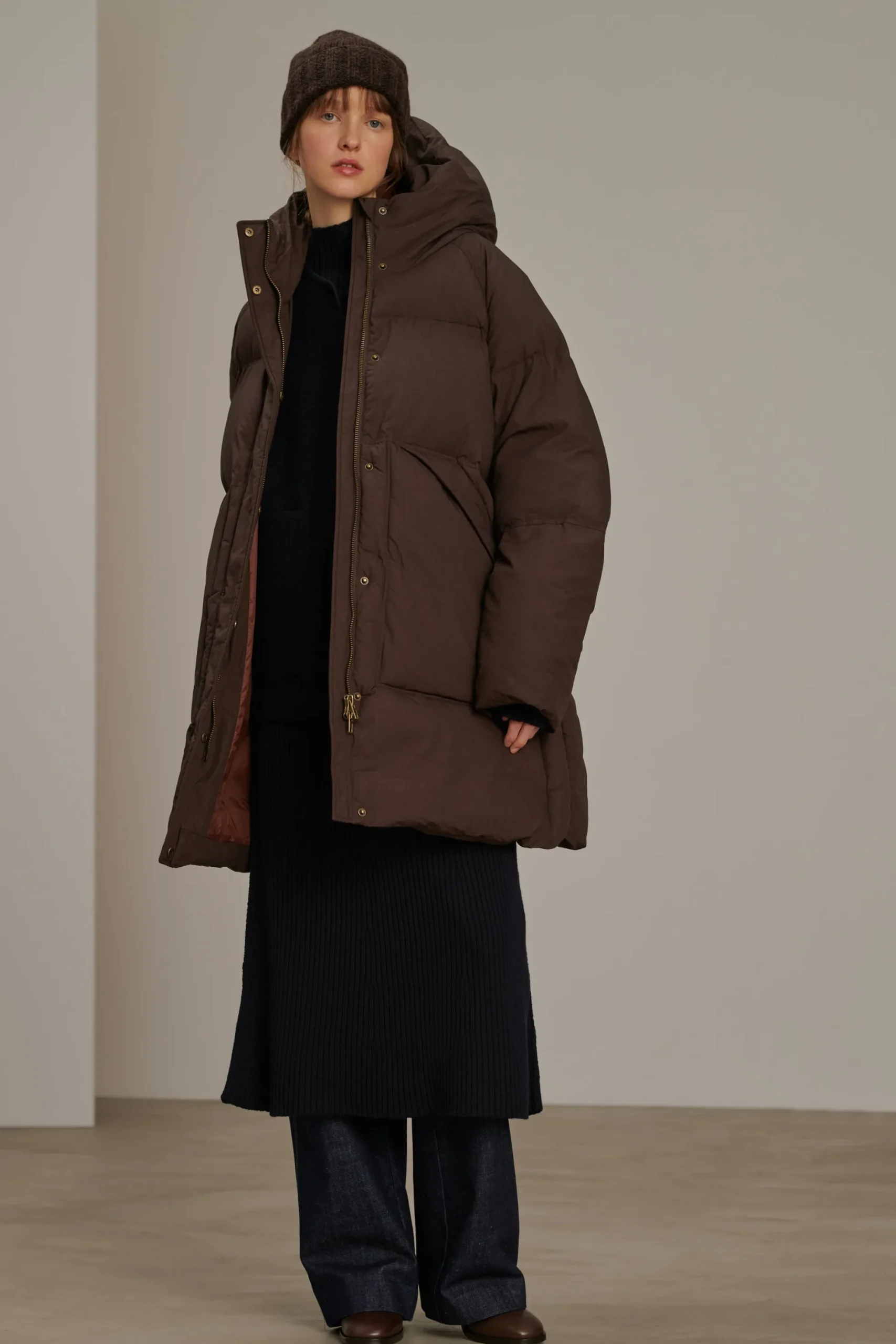 STORM est une doudoune oversize à capuche, idéale pour l鈥檋iver. Ce manteau long matelassé, avec des manches longues raglan, offre confort et chaleur. L’ouverture à patte de boutonnage cachée avec zip garantit une allure épurée, tandis que sa teinte marron s’intègre facilement à toute garde-robe hivernale.