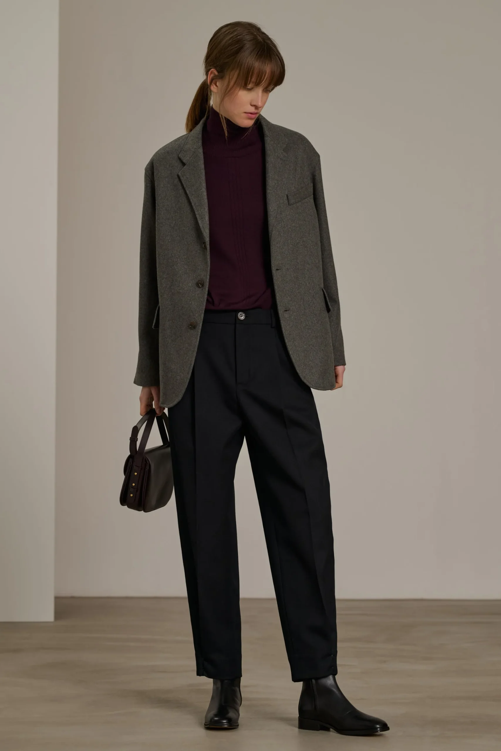 Pantalon en gabardine de laine noir- Pantalon à pinces