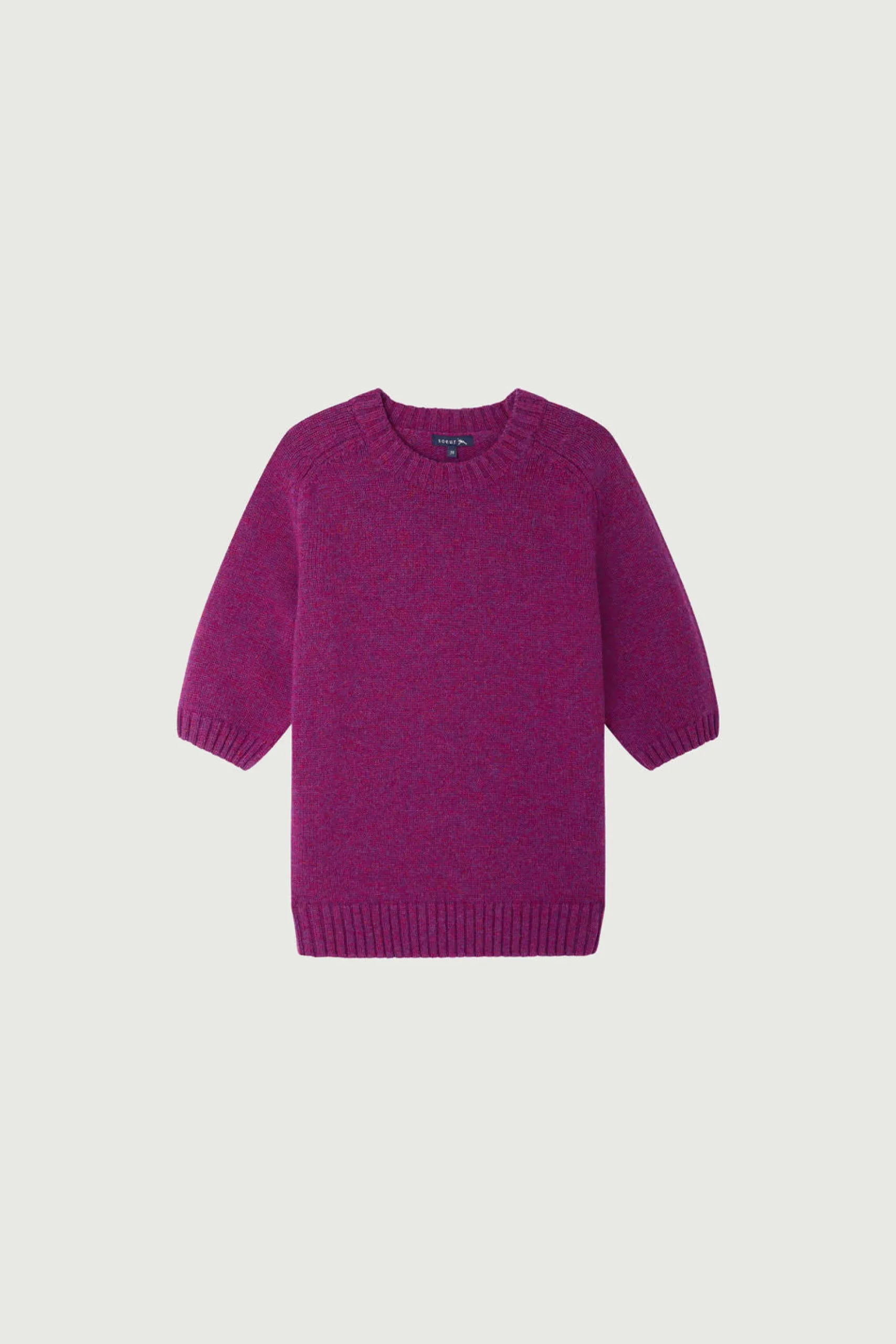 BETINA est un petit pull à manches courtes, tel un tee-shirt d’hiver. À l’encolure ronde, pour laisser apparaître un col de chemise boutonnée, la forme de ses manches est légèrement arrondie pour lui donner une touche de féminité.