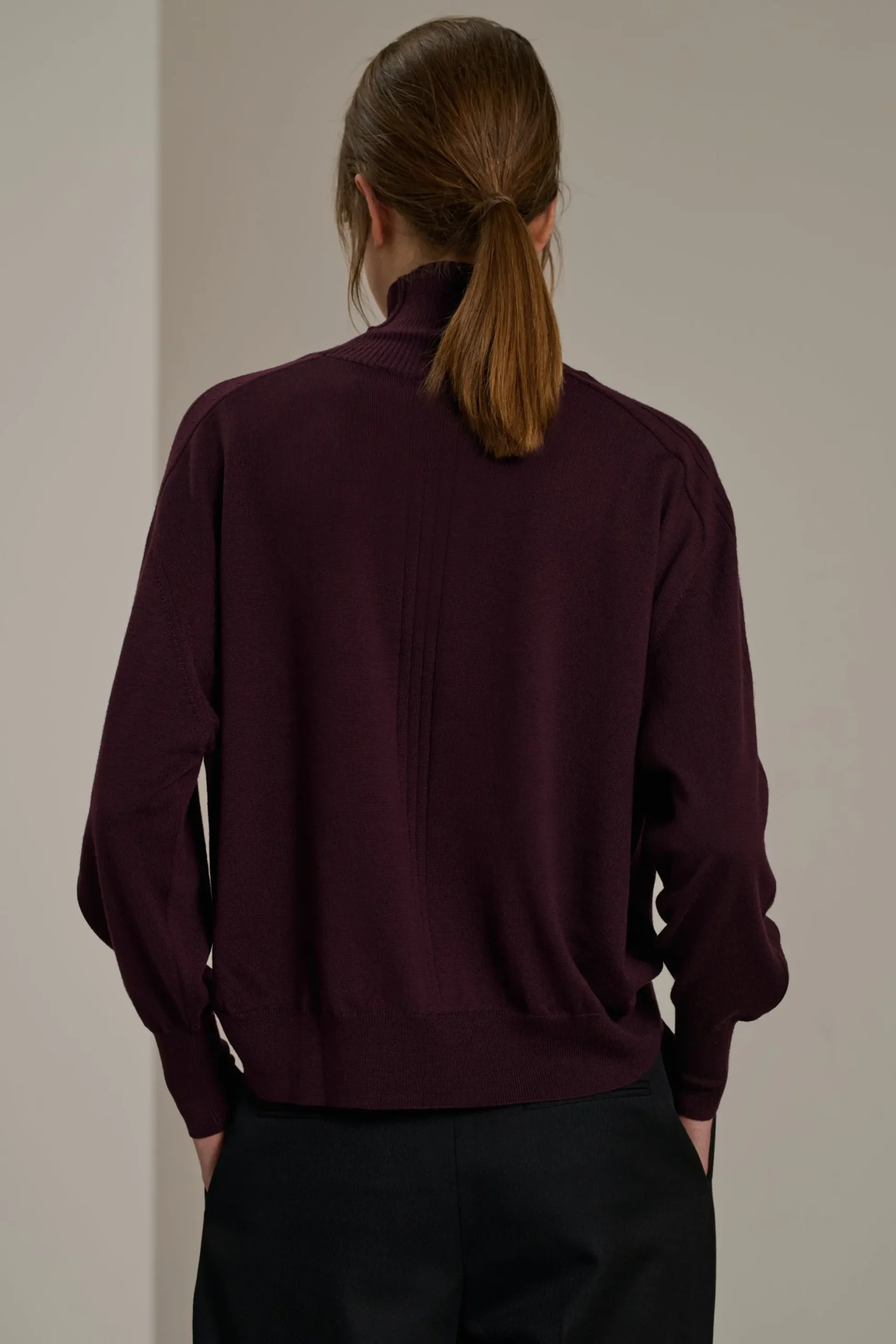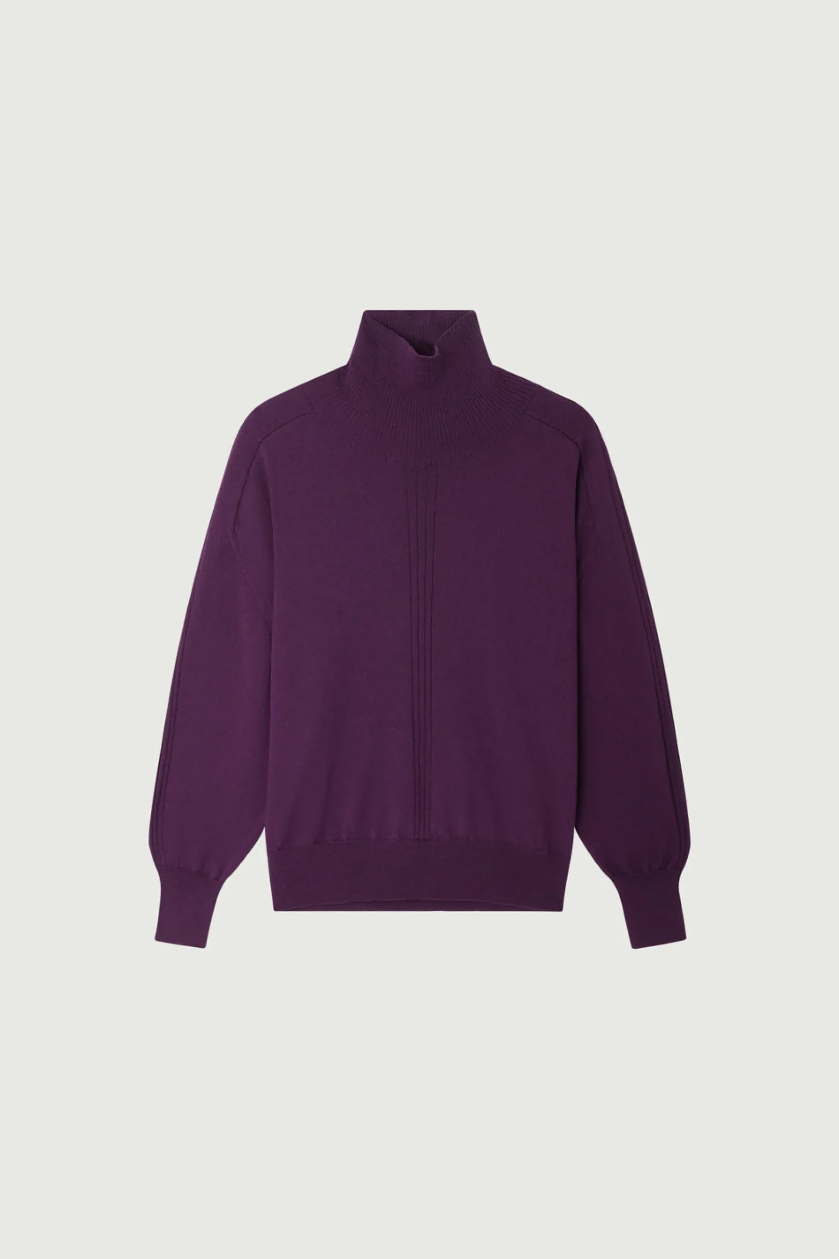 NORD est un pull en laine mérinos qui s’intègre parfaitement dans un vestiaire intemporel. Ce col roulé oversize offre une coupe ample et confortable, à porter à même la peau ou en superposition. De nombreuses finitions signent son identité Soeur : un jeu de côtes court au-devant et le long des manches, le col et les poignets sont tricôtés en côtes fines.