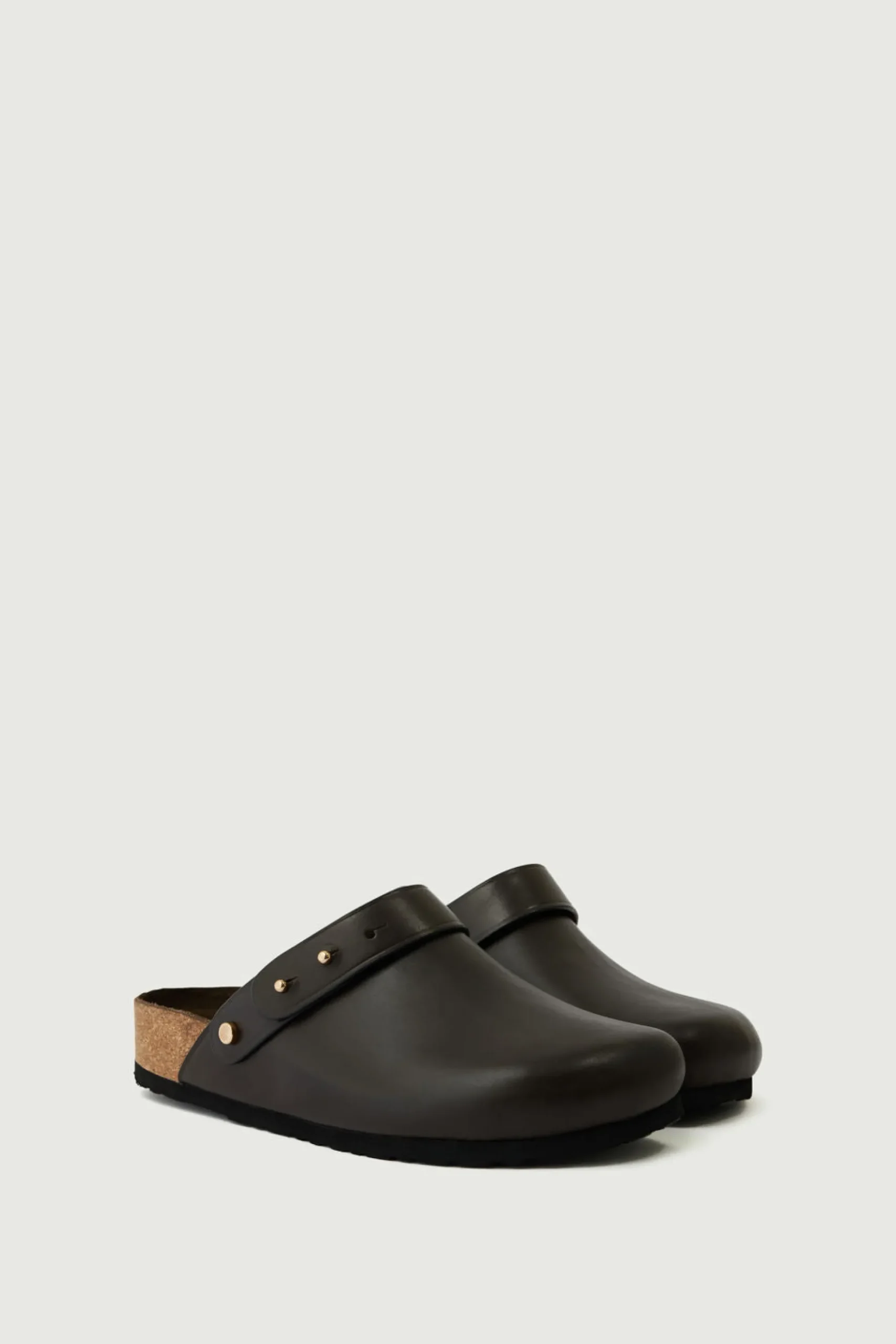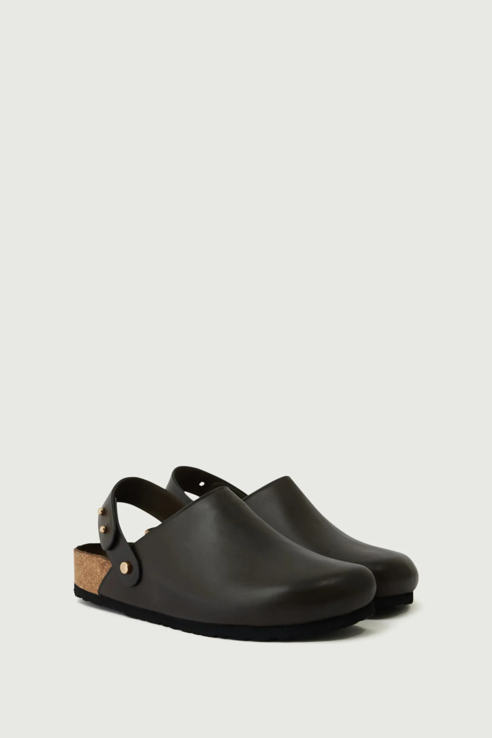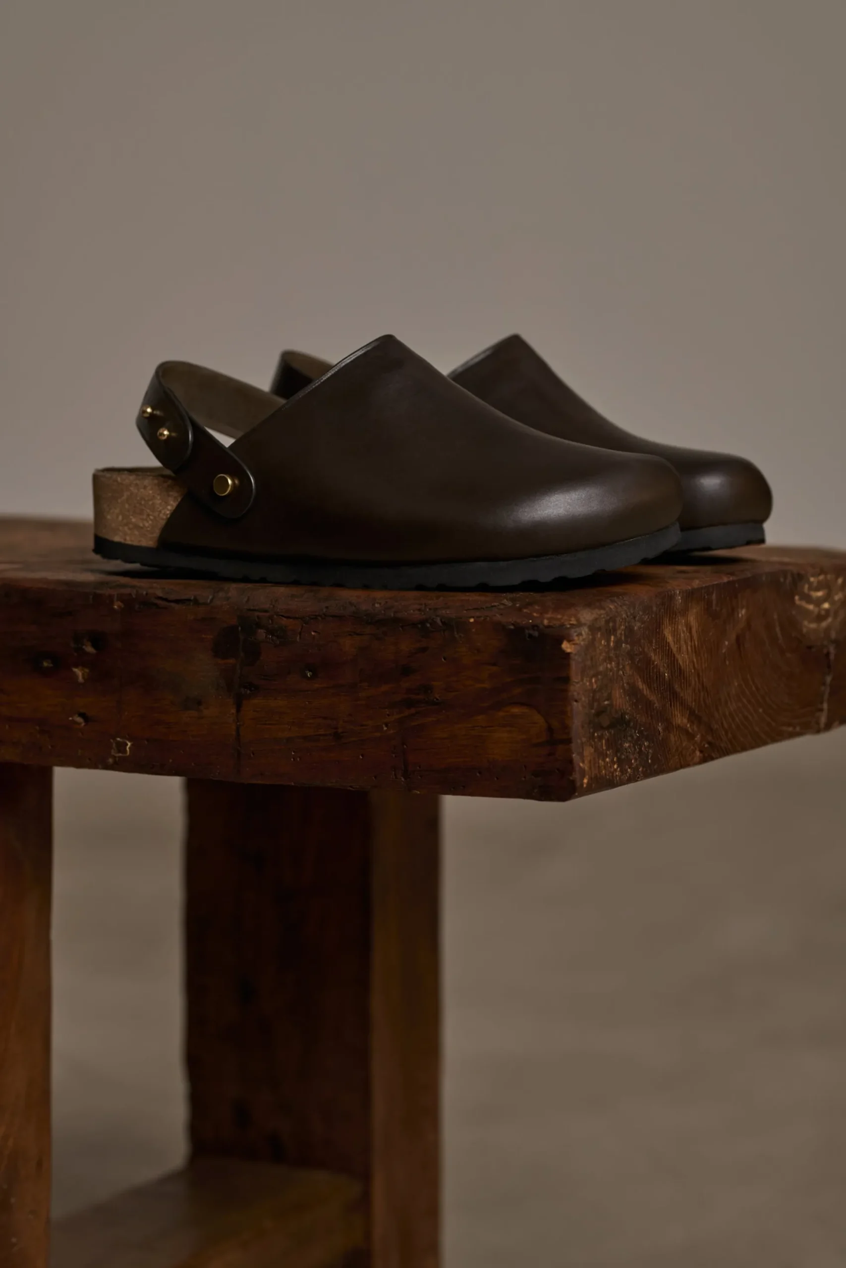Sabots en cuir lisse brun gris