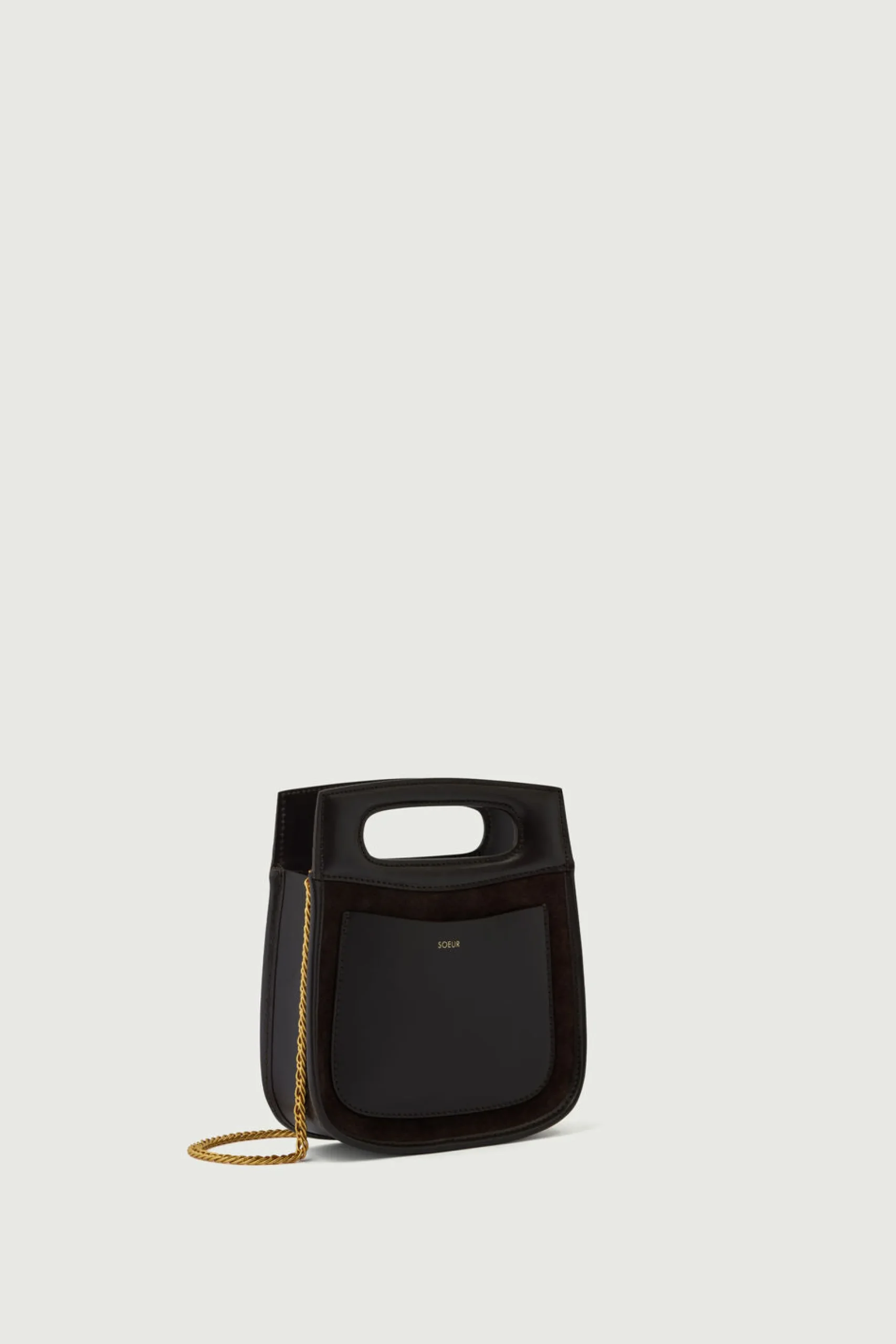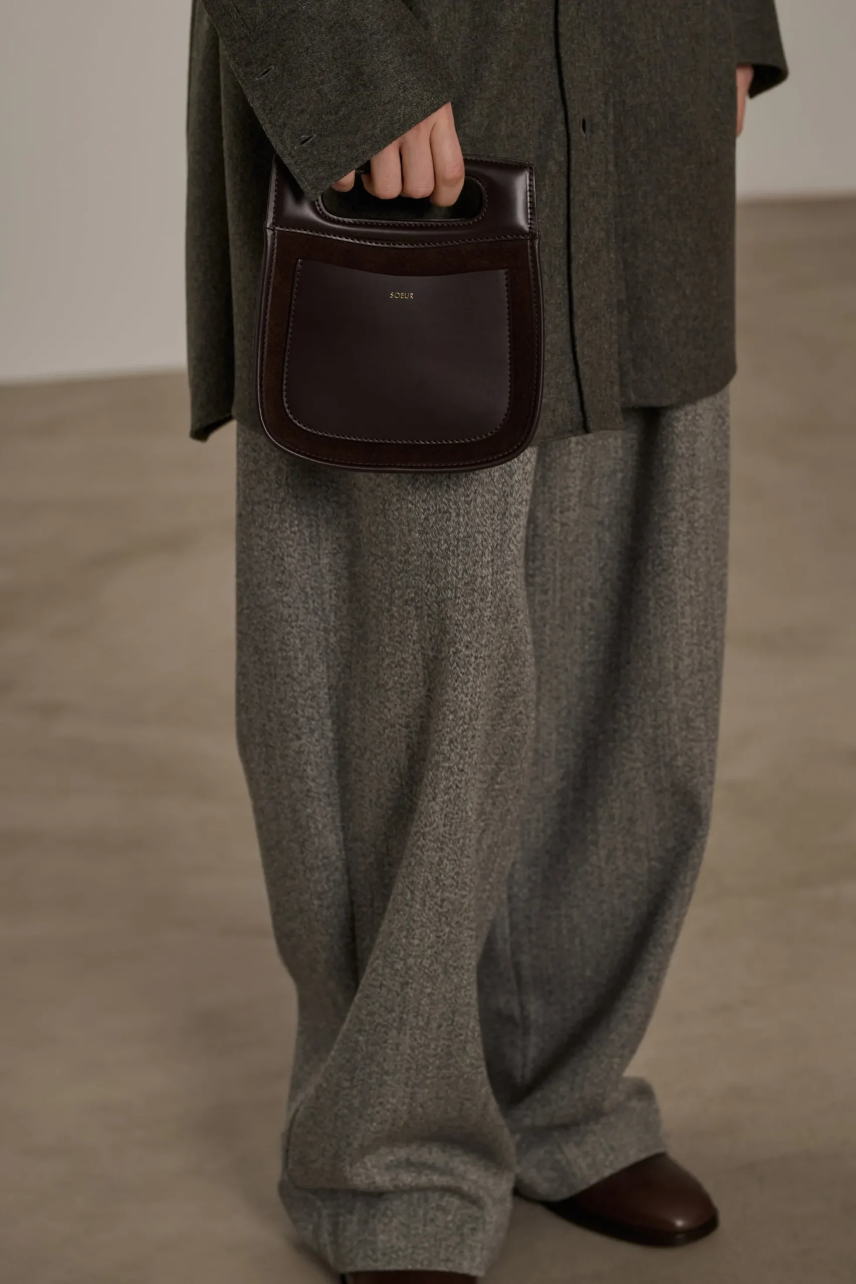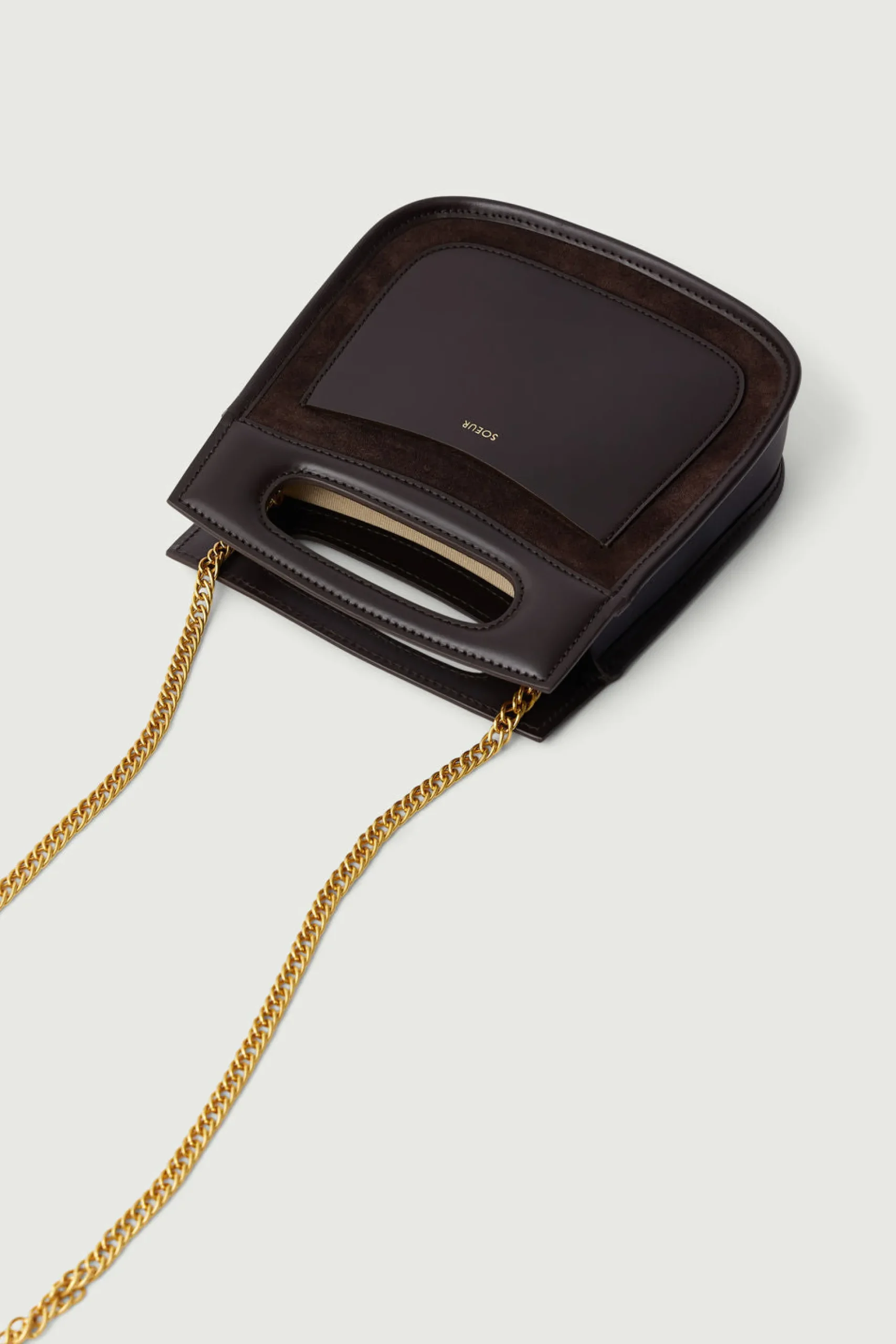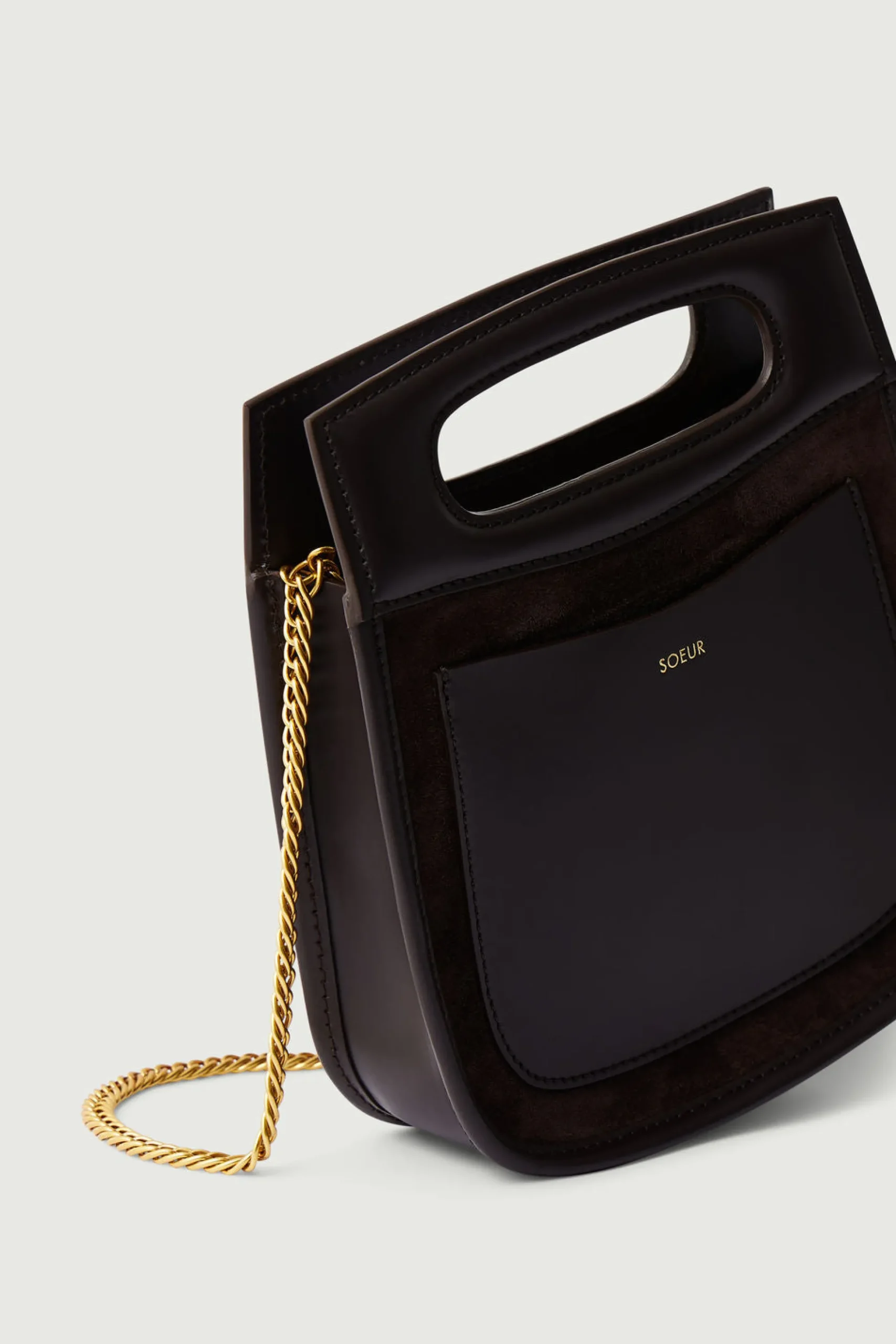 Petit sac bi-matière en cuir lisse et suede marron foncé