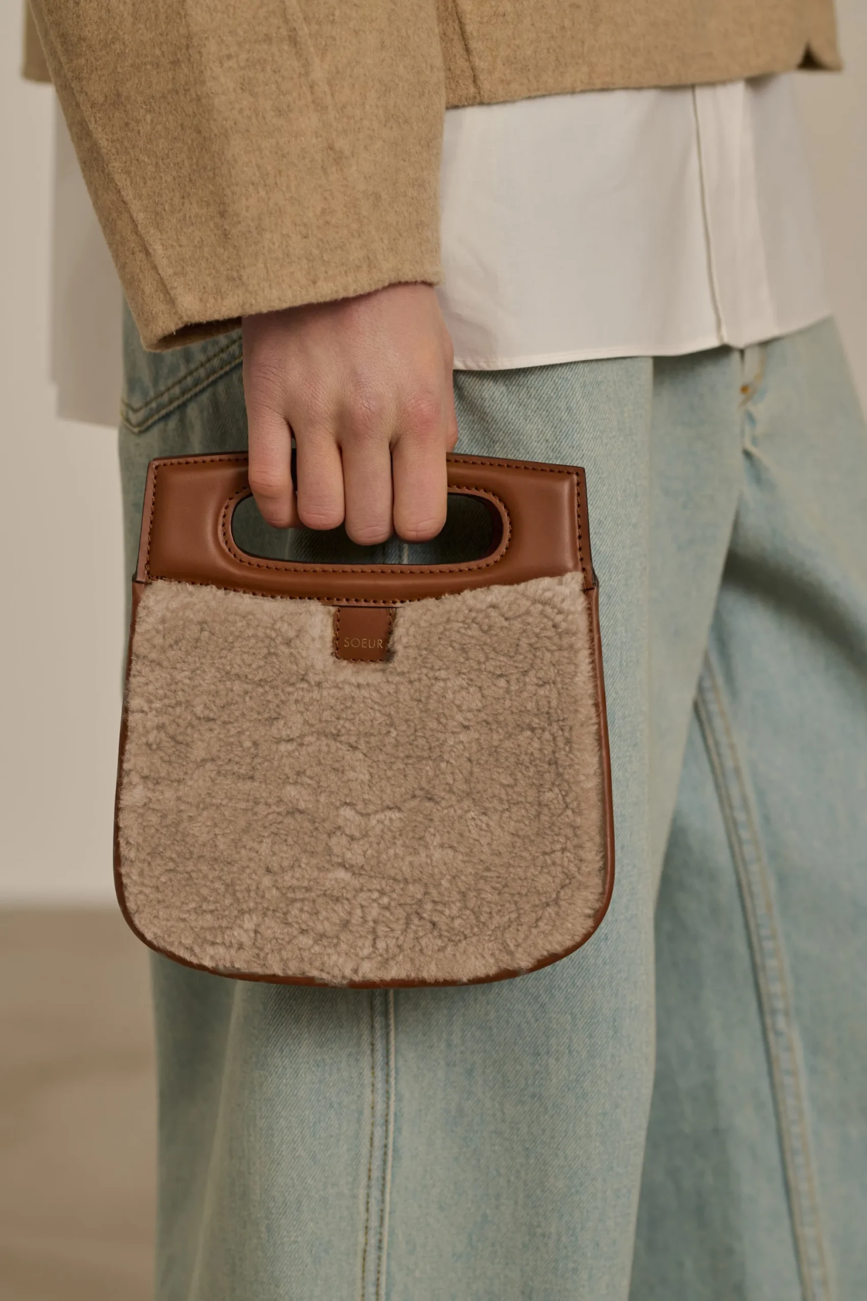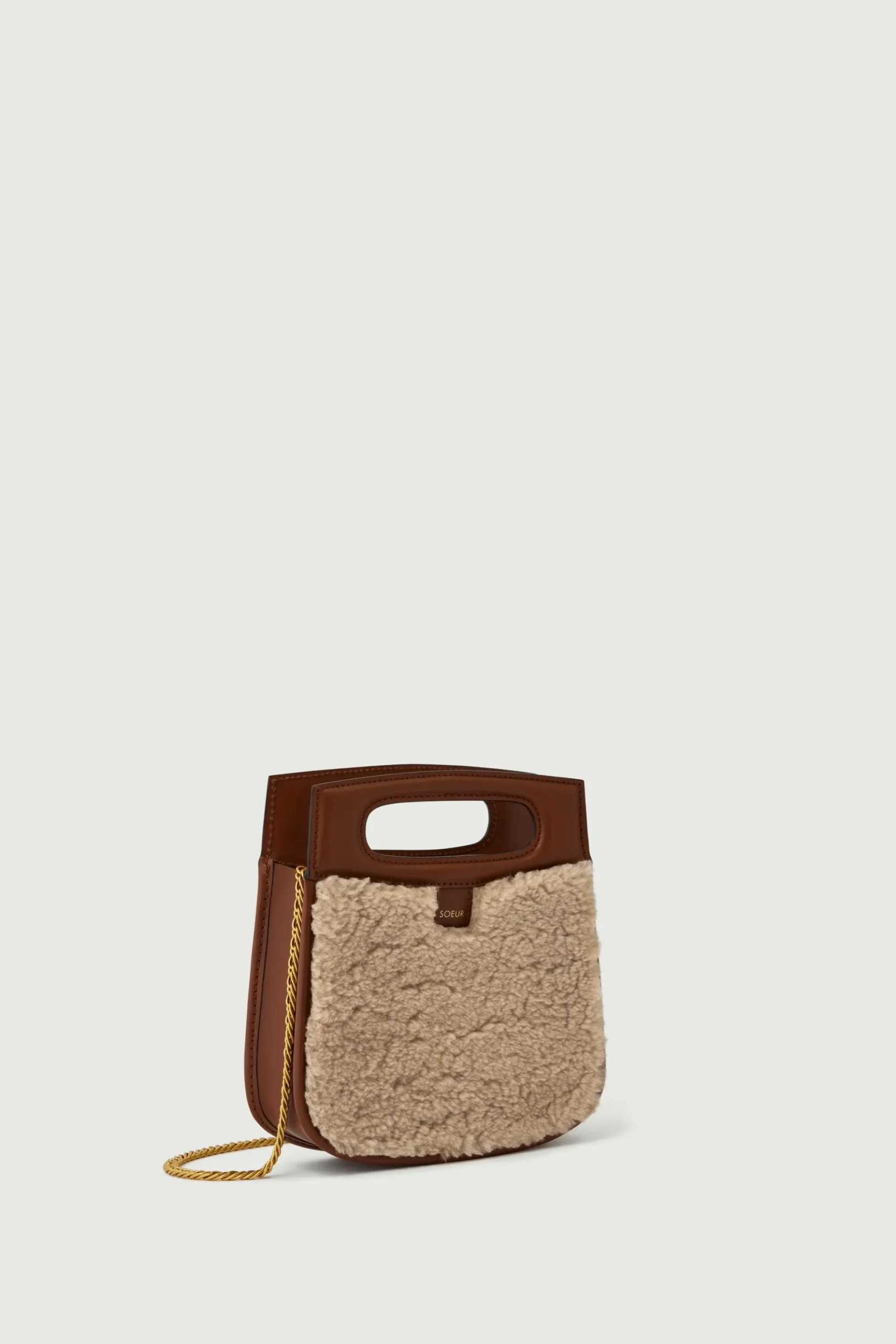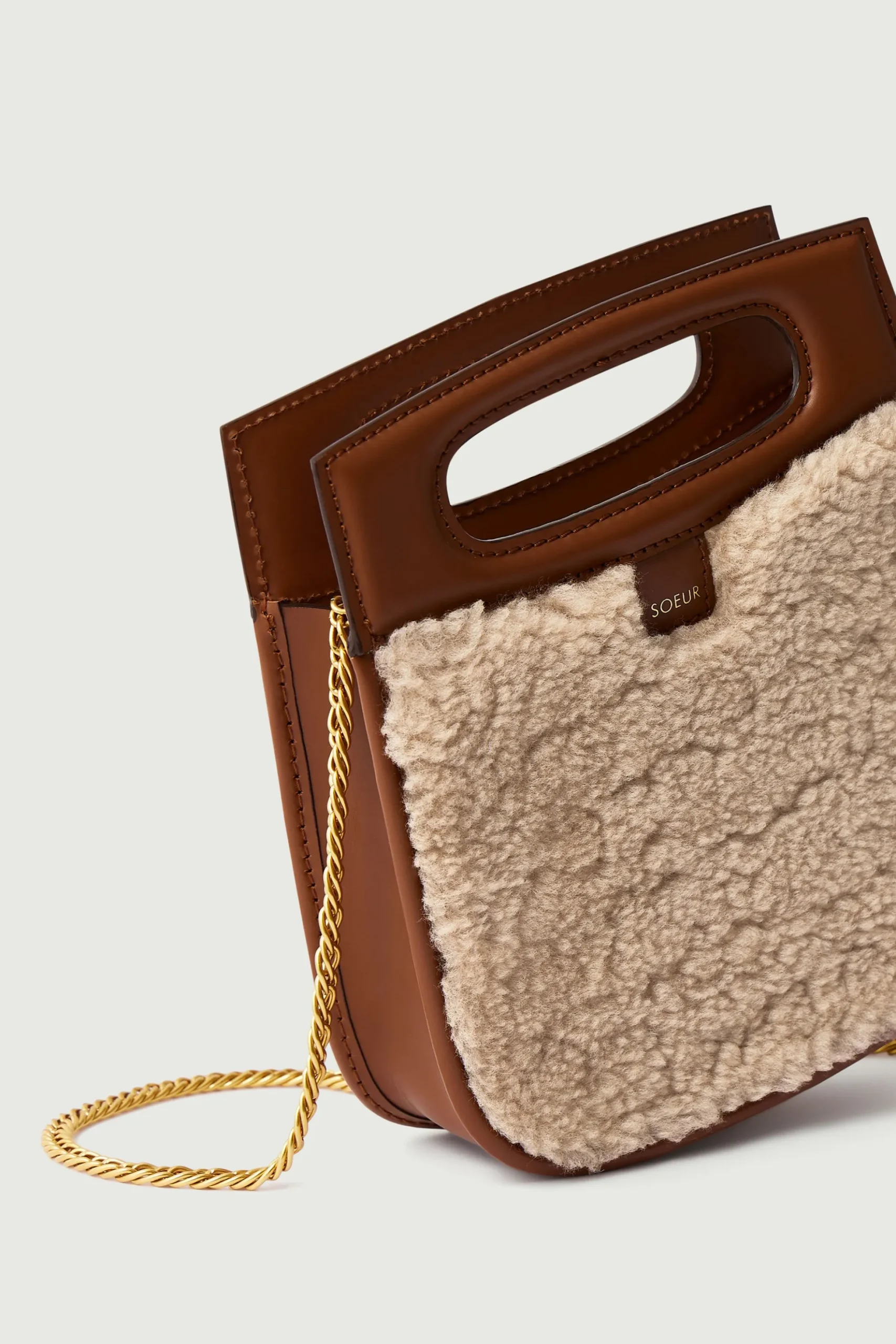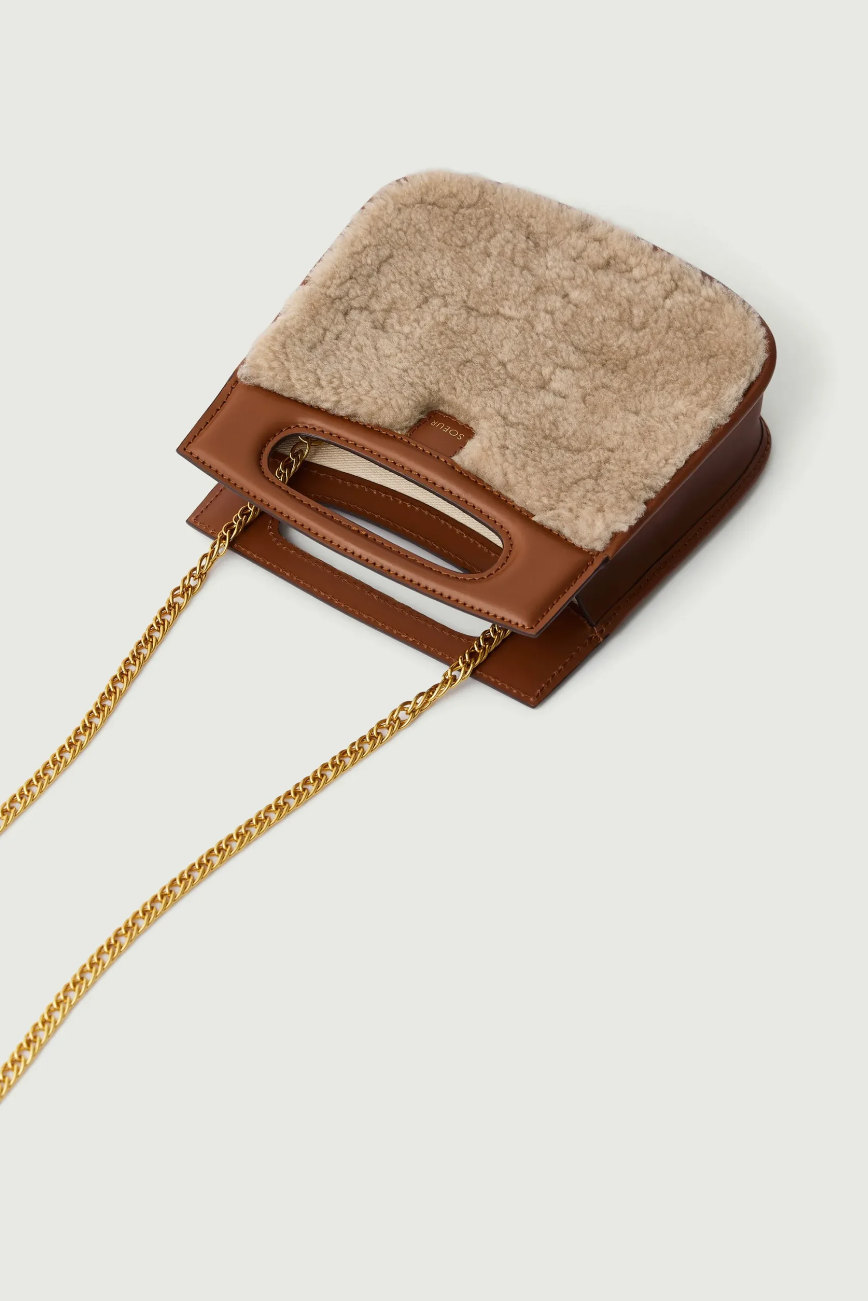 Petit sac en cuir lisse naturel et shearling sable