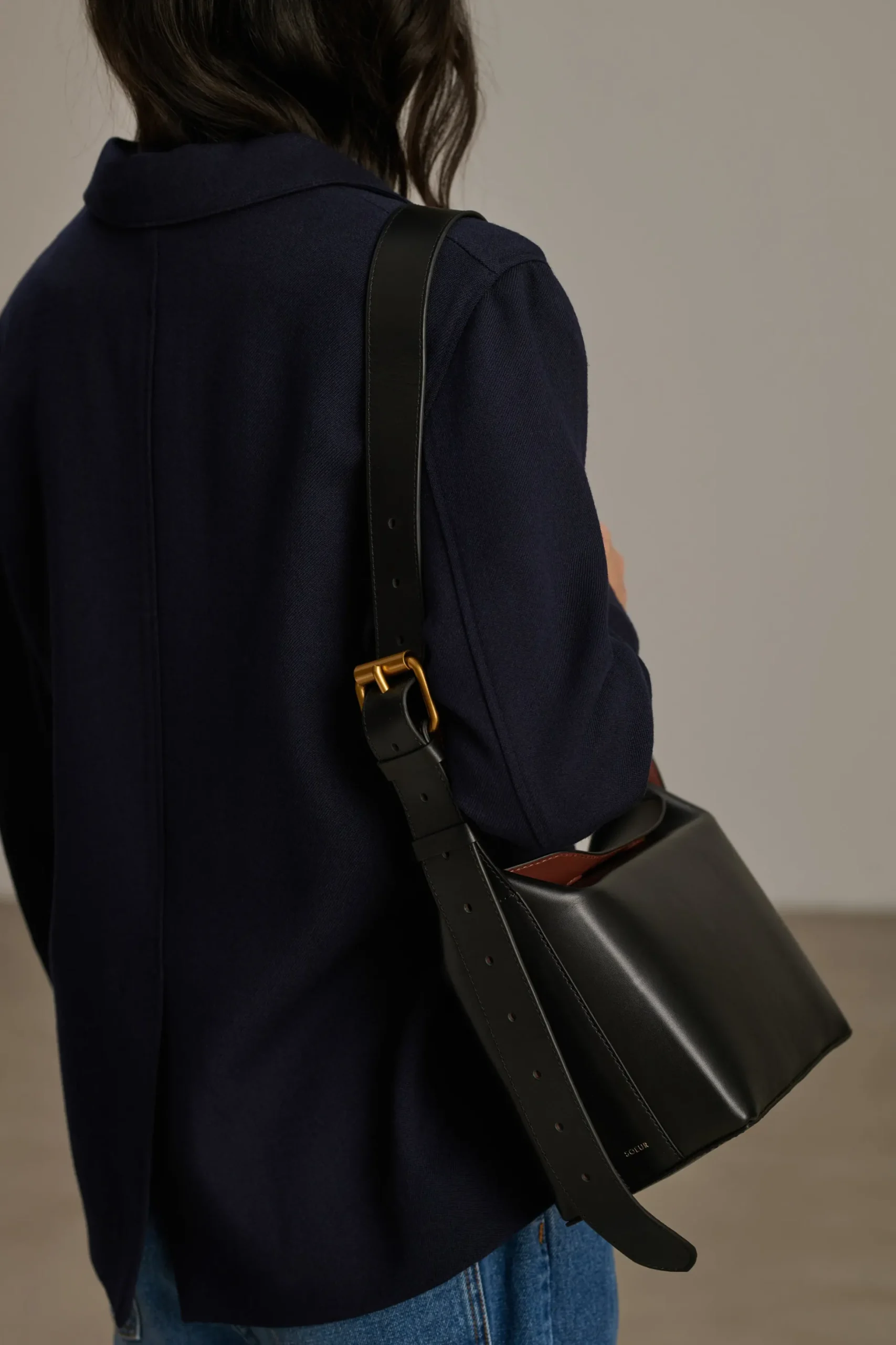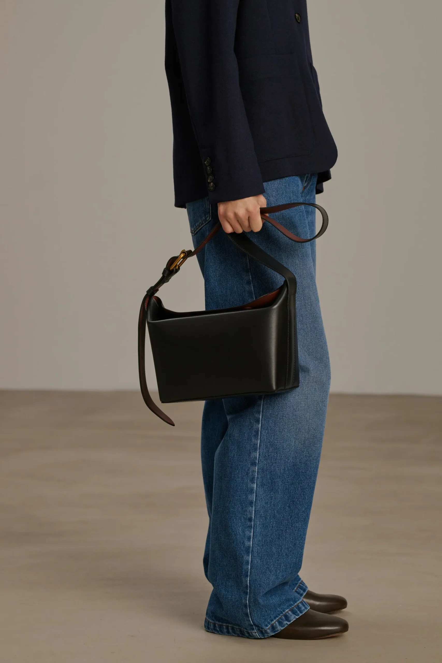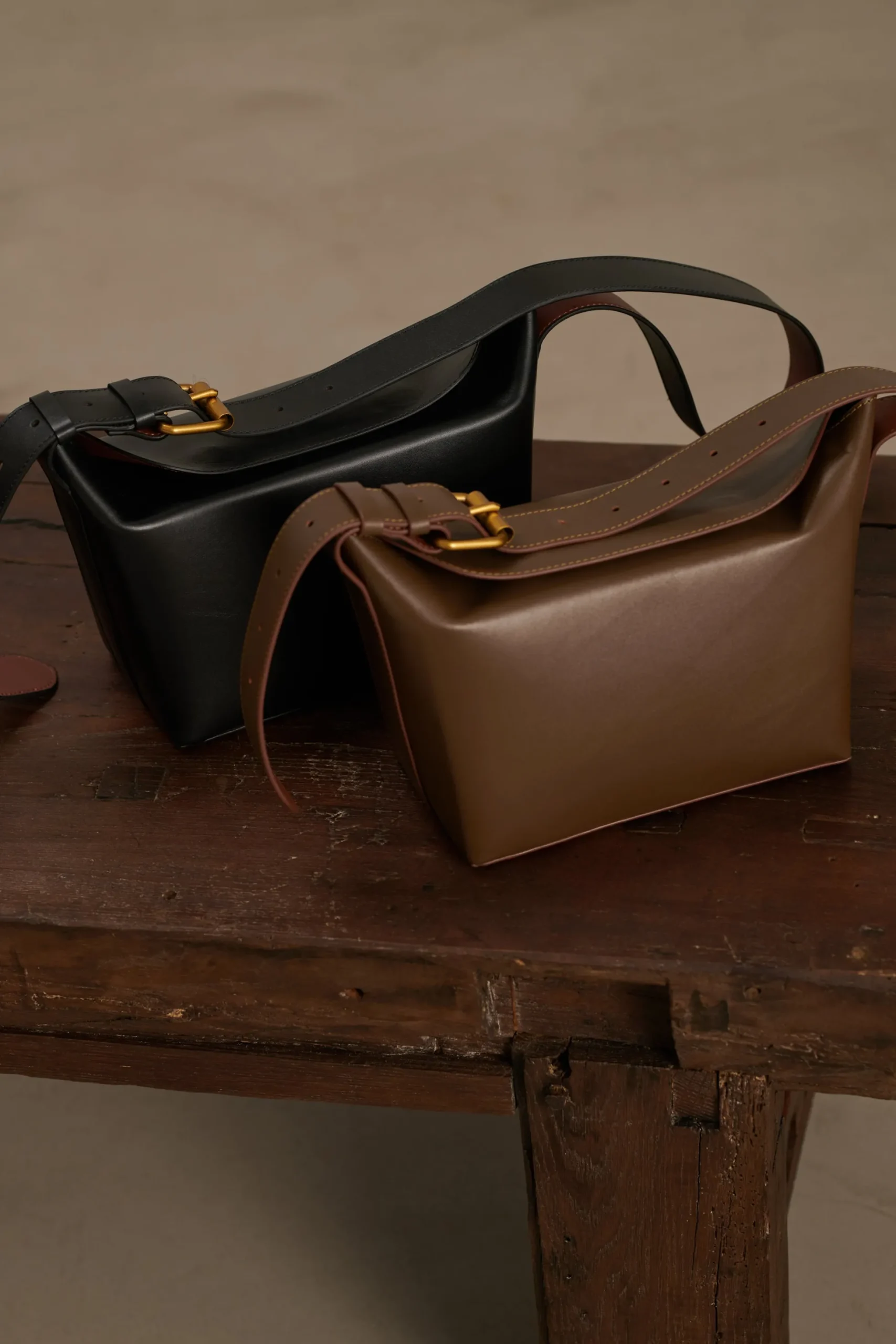 – Bandoulière ajustable par une boucle a double ardillons, de longueur max