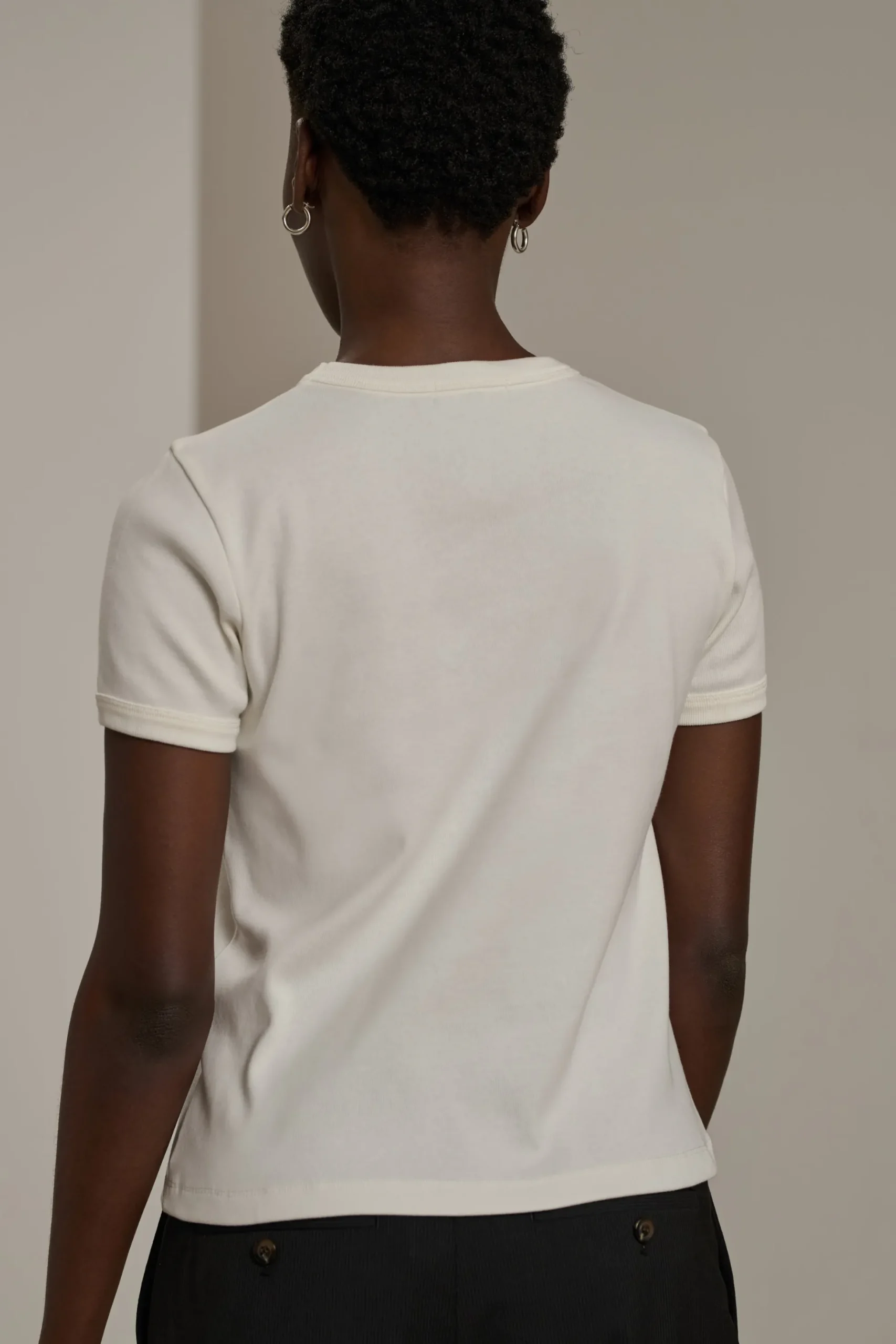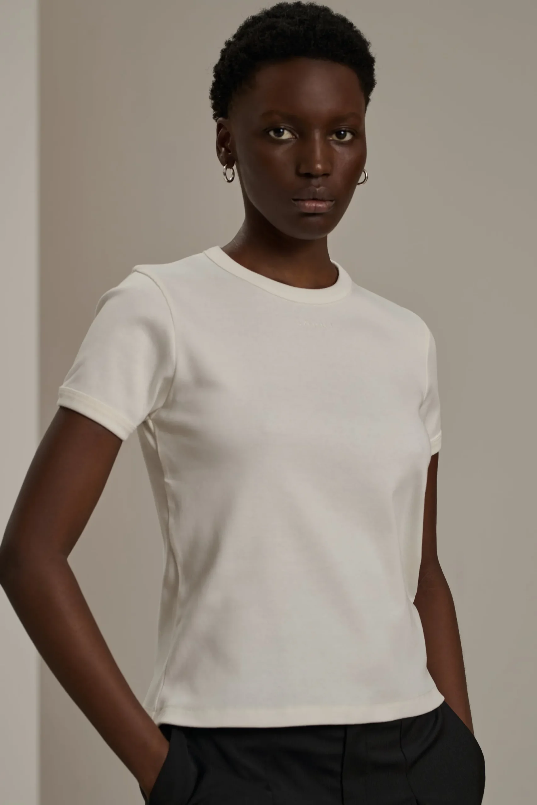 T-shirt manches courtes en jersey à fines cotes à logo « soeur » brodé