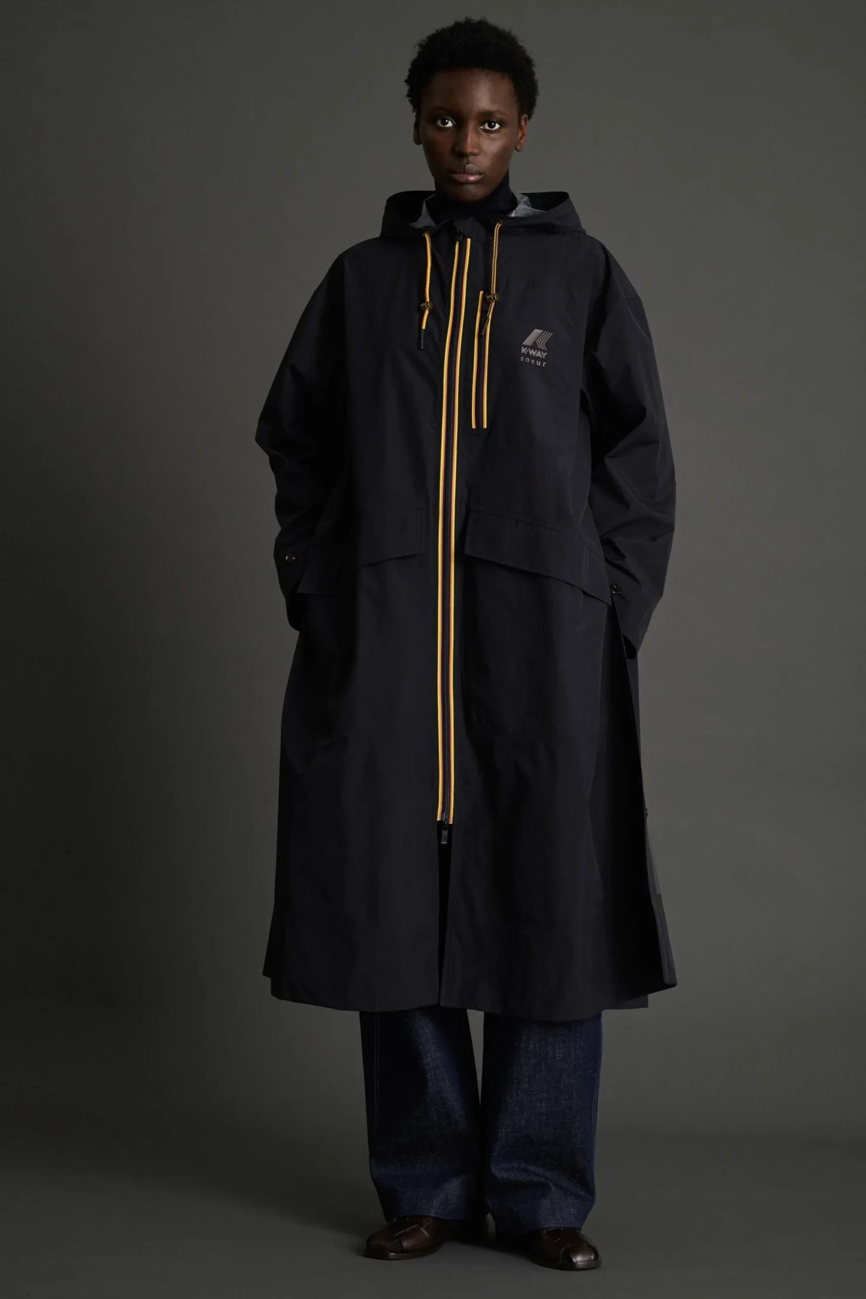 PRADEL est un trench imperméable hybride entre parka et trench à capuche. Son volume trapèze oversize se porte même par-dessus un manteau, avec coutures thermosoudées pour une étanchéité parfaite. Les pressions aux côtés facilitent l’accès aux poches, et les manches sont ajustables par un système à pression.